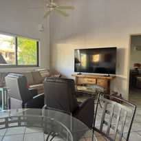 Contemporary living/dining area with 65-inch TV with firestick and access to your streaming service accounts such as Netflix, Prime, etc.